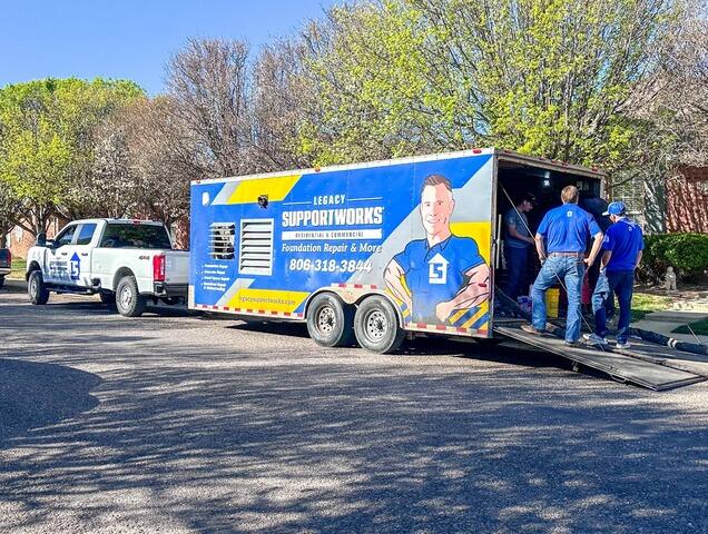 The Legacy Supportworks team arrives on-site in West Texas, fully equipped to tackle foundation repair and concrete leveling. Our mobile work unit allows us to deliver efficient, professional solutions right at your home or business.